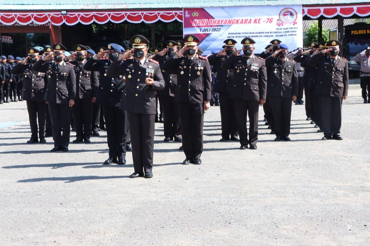 Jayapura, Nusantarapos – Dalam rangka memperingati Hari Bhayangkara ke – 76 Tahun, Polres Nabire mengikuti upacara yang dilaksanakan secara virtual bertempat di lapangan apel Polres Nabire, Selasa (5/7/2022).