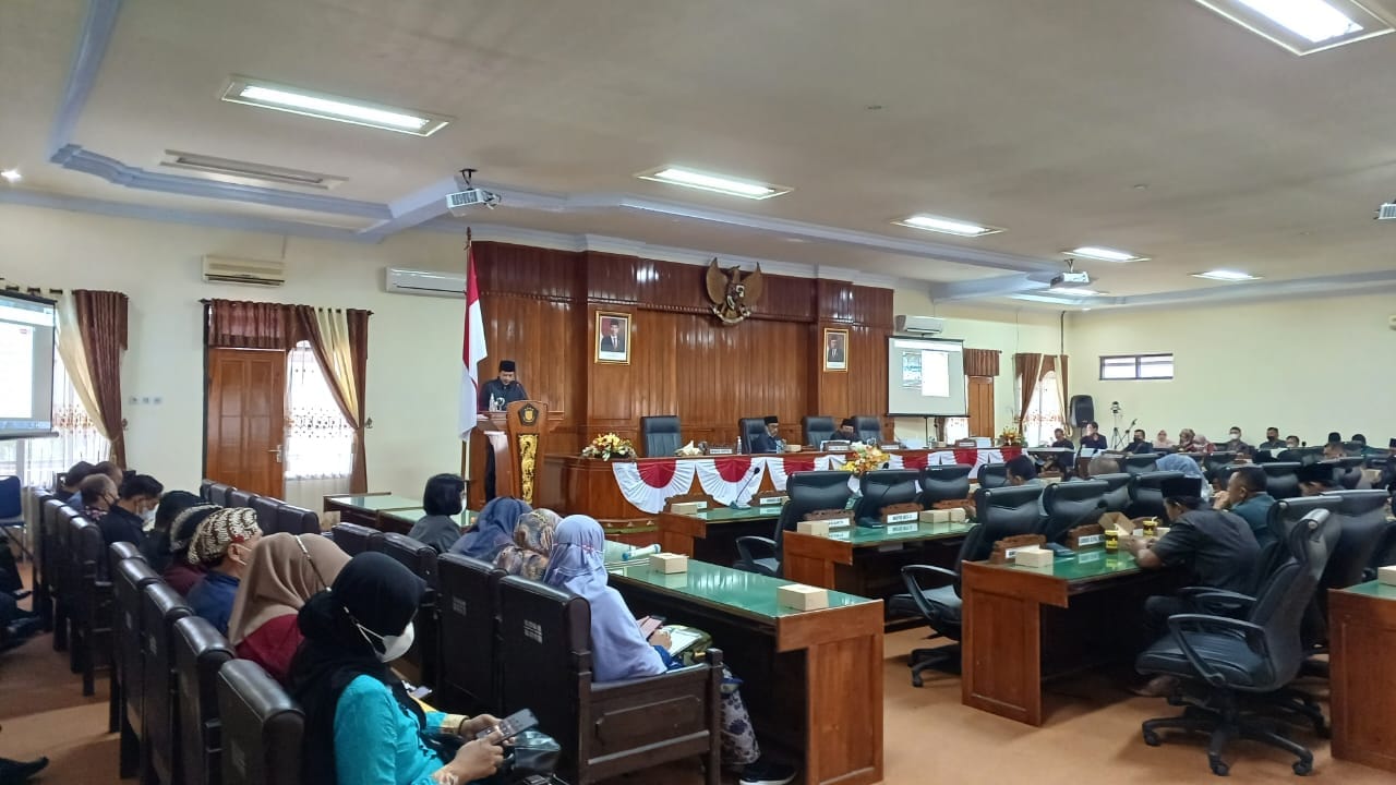 Rapat paripurna kali ini dengan agenda penyampaian jawaban Bupati atas pandangan umum fraksi di DPRD tentang rancangan peraturan daerah (Ranperda) pertanggung jawaban pelaksanaan APBD 2021.