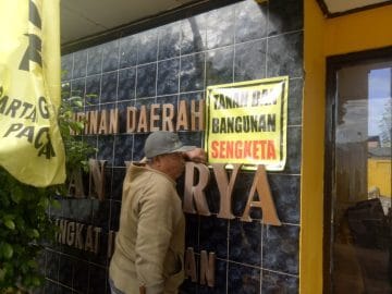PACITAN, NUSANTARAPOS, -Sertifikat bangunan gedung yang sebelumnya adalah milik Ahmad Efendi dan digunakan sebagai Kantor Golongan Karya, kini berubah digunakan DPD Partai Golkar. Namun tempat tersebut masih dipermasalahkan terus oleh ahli waris karena menganggap ada permasalahan dengan Pemda Pacitan belum selesai.