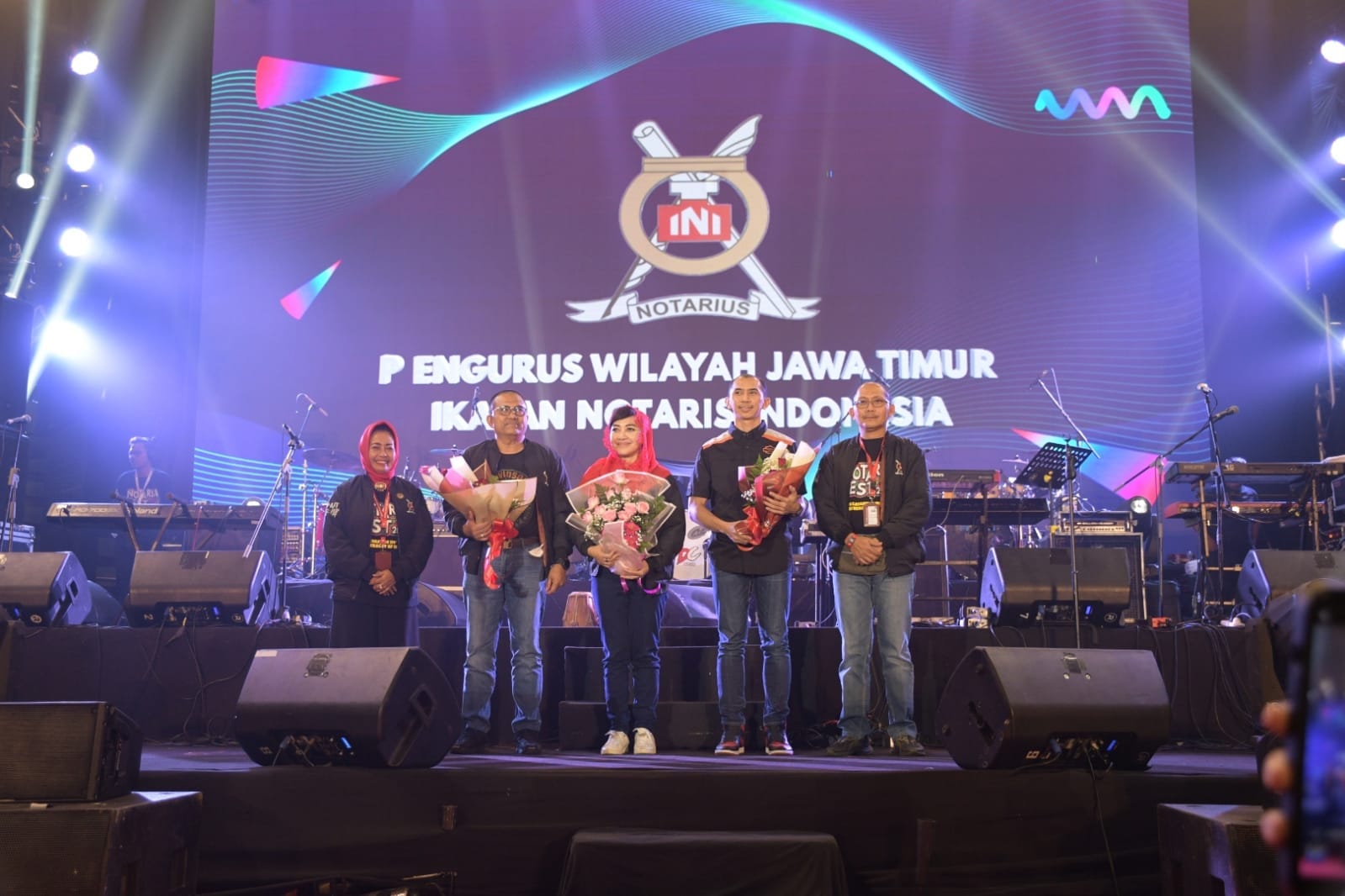 Turut hadir Wakil Gubernur Jawa Timur Emil Dardak, Ketua Umum INI Yualita Widyadhari, Sekum INI Tri Firdaus Akbarsyah dan jajaran Pengurus Pusat Ikatan Notaris Indonesia. Konser musik itu dibuka dengan penampilan Rizky Febian dengan lagu andalannya sehingga membuat penonton bergemuruh menyerukan anak komedian Sule tersebut.