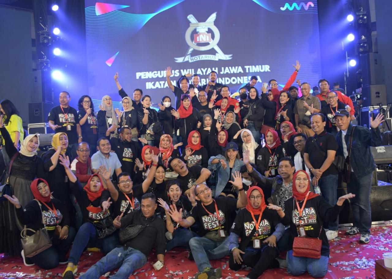 Surabaya, NUSANTARAPOS.CO.ID – Setelah sebulan lamanya mengadakan Notaria Fest 2022 dengan berbagai macam kegiatan seperti lomba menyanyi, olahraga dan bazzar. Pengurus Wilayah Jawa Timur Ikatan Notaris Indonesia (Pengwil Jatim INI) sukses menutup kegiatan tersebut dengan sebuah konser musik yang sangat dengan spektakuler karena dihadiri oleh penyanyi seperti Rizky Febian, Judika dan Denny Caknan yang diadakan di DBL Arena Surabaya, Jumat (29/7/2022).