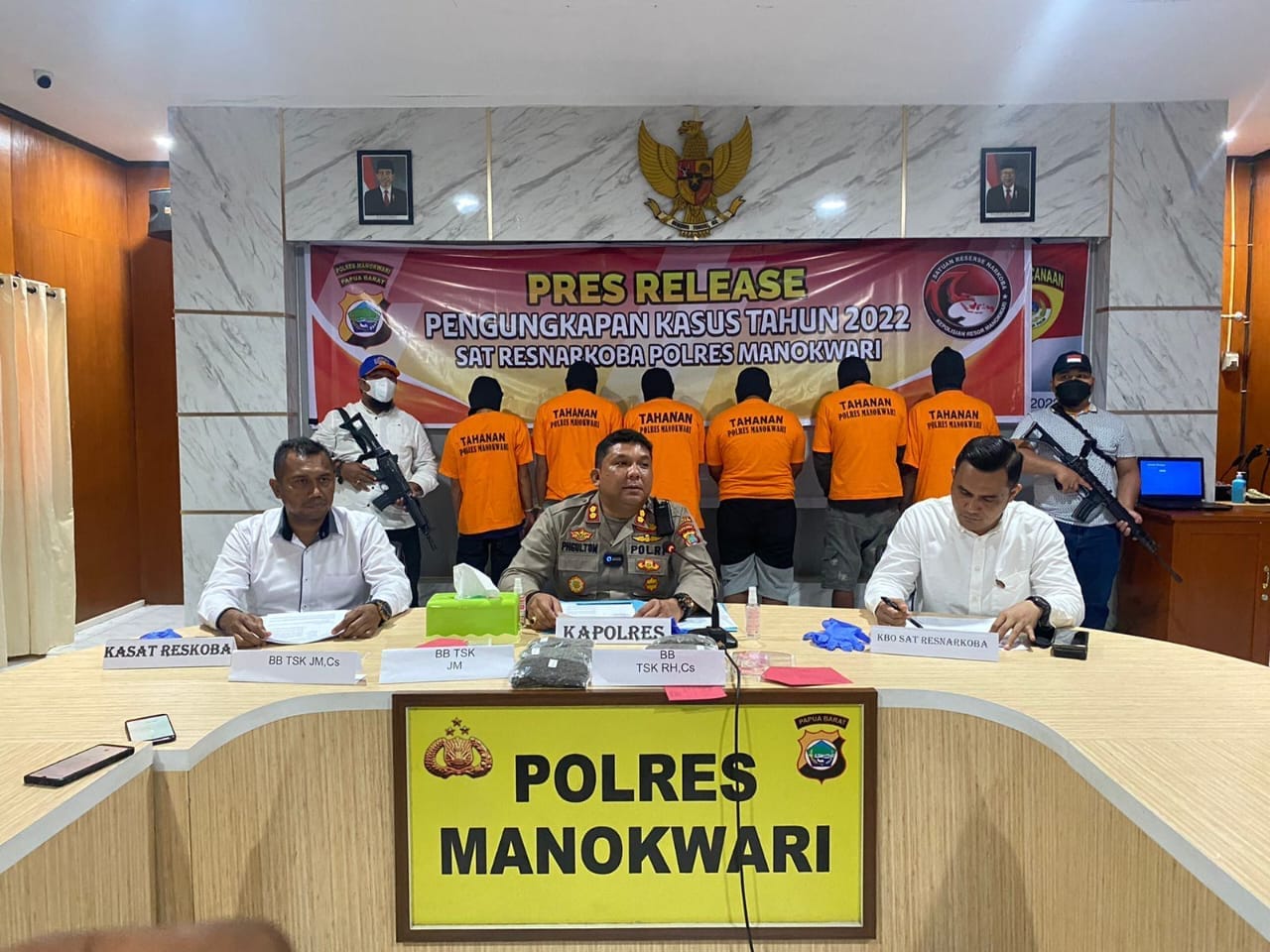 Kapolres AKBP P. H. Gultom yang hadir bersama Kasat resnarkoba Ipda John Haulussy serta Kaur bin Ops Ipda Thomas Sabon menyampaikan, “Pada tanggal 31 juli tim opsnal resnarkoba berhasil mengamankan 3 orang tersangka yang tengah melakukan transaksi narkotika di sekitar lampu merah sinar suri. Dari tangan ketiganya didapatkan barang bukti 1 bungkus plastik bening diduga berisikan ganja seberat 5,78 gram, ” katanya saat jumpa pers di Polres Manokwari, Senin (22/8/2022).