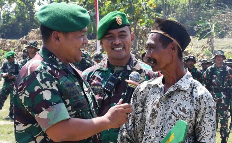Layaknya moderator yang memandu sebuah acara talk show. Kasrem pun meminta kepada Pujiono untuk menyampaikan ucapan terima kasihnya kepada Bupati Ony yang telah membantu merenovasi rumahnya melalui program TMMD ke-114 di desanya.