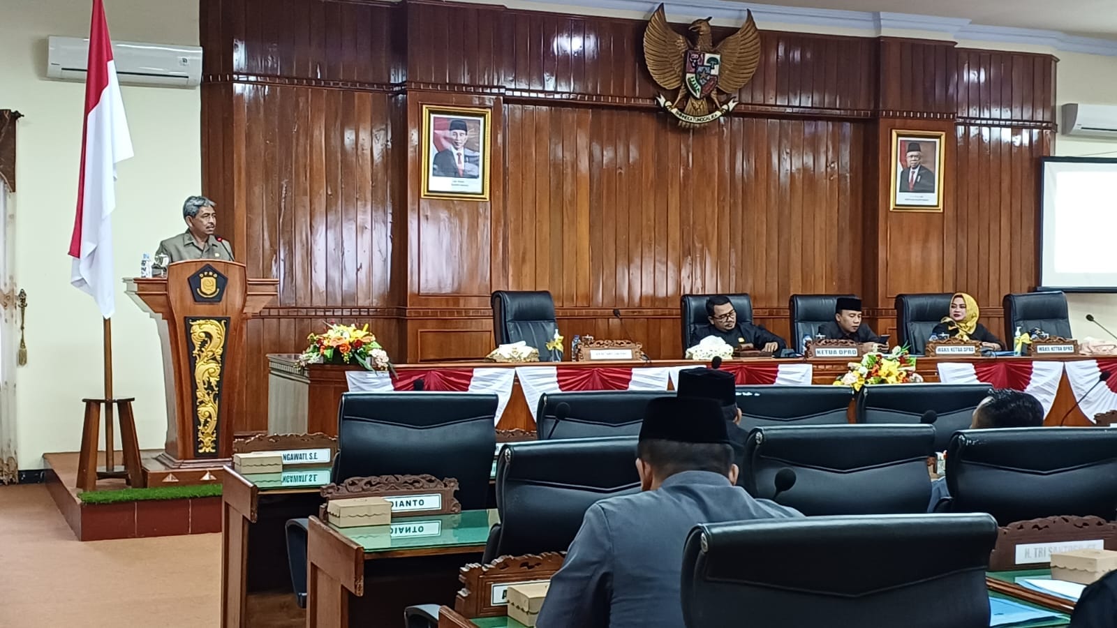 Dalam rapat paripurna kali ini, Kamis (29/9/2022) DPRD mendengarkan jawaban Bupati atas pandangan umum (PU) fraksi terhadap Ranperda APBD tahun anggaran 2023. Dihadiri Sekda Edy Soepriyanto, pelaksanaan paripurna berjalan dengan lancar.