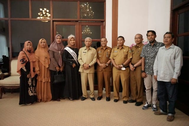 ASAHAN, NUSANTARAPOS – Bupati Asahan, Surya didampingi Asisten Pemerintahan dan Kesra Buwono Prawana, SIP, MSi, Kadis Porapar, Kadis Kominfo Syamsuddin, SH, MM menerima kunjungan Putri Hijab Indonesia Sumatera Utara (Sumut) Putri Fadillah Manik, bertempat di Ruang kerja Bupati Asahan, Selasa (06/09/2022).