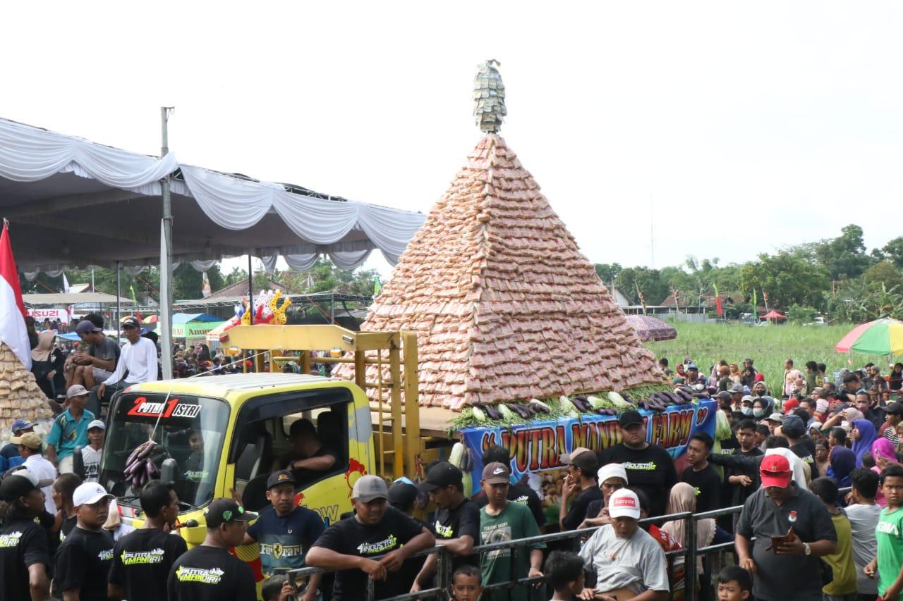 JOMBANG,NUSANTARAPOS,- Sebagai ungkapan rasa syukur dalam rangka peringatan Maulid Nabi Muhammad SAW 1444 H dan HUT Jam’iyyah Mahabbatur Rosul Ke-58, Perkumpulan UMKM Tahu Jombang “Sumber Berkah” Dusun Bapang, Desa Sumbermulyo, Kecamatan Jogoroto, Kabupaten Jombang, Jawa Timur, menyelenggarakan Festival Grebeg Tahu dan Pawai gunungan tahu.
