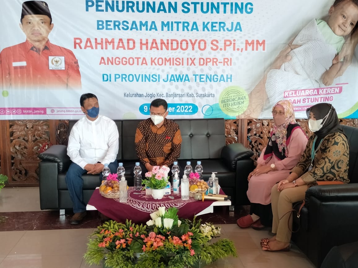 SURAKARTA,NUSANTARAPOS,- Rahmat Handoyo S.Pi., MM Anggota komisi IX DPR RI kembali menggelar acara program percepatan penenaganan stunting bersama dengan mitra kerja Badan Koordinasi Keluarga Berencana Nasional di Kelurahan Joglo, Kecamatan Banjarsari, Surakarta, Minggu (9/10/22) lalu.