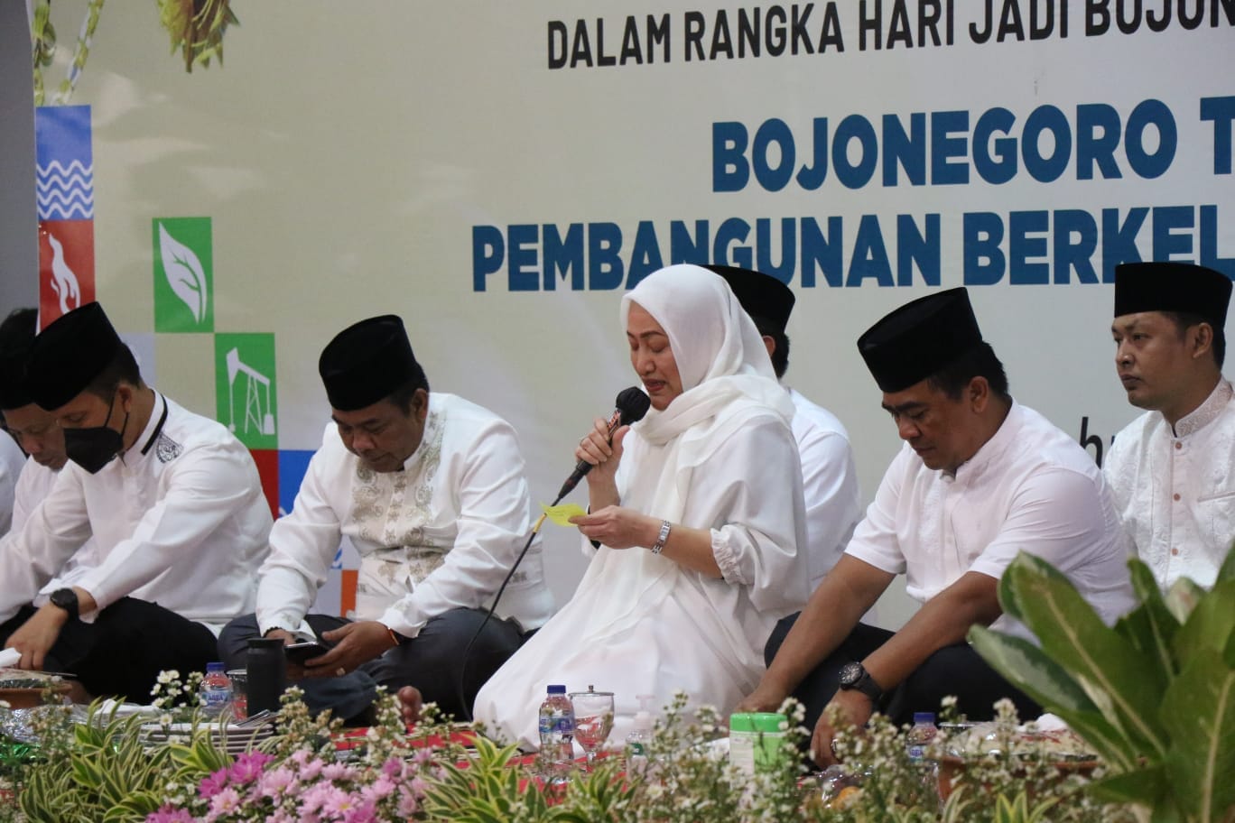 “Mohon do’anya semoga upacara hari Bojonegoro ke-345 yang akan dilaksanakan besuk pagi di Alun-alun Bojonegoro dapat berjalan dengan lancar,” ungkap Ibu Pembangunan tersebut