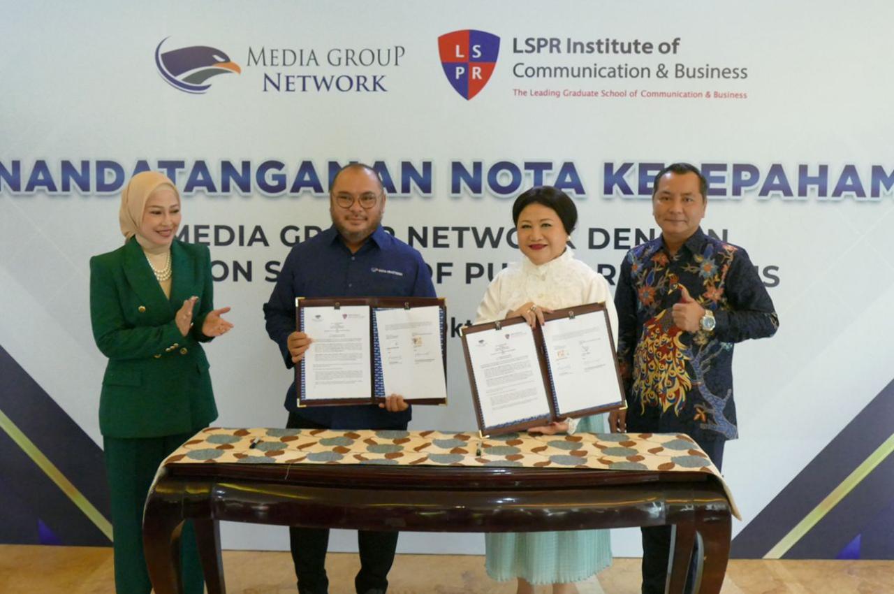 Penandatanganan para pihak dilakukan oleh Dr. (H.C) Prita Kemal Gani, MBA, MCIPR, APR (Founder & CEO LSPR Institute) bersama Dr. Andre Ikhsano (Rektor LSPR Institute), dan Mohammad Mirdal Akib (CEO Media Group Network) serta Dena Rochmawaty – Executive Assistant to CEO MGN.