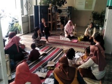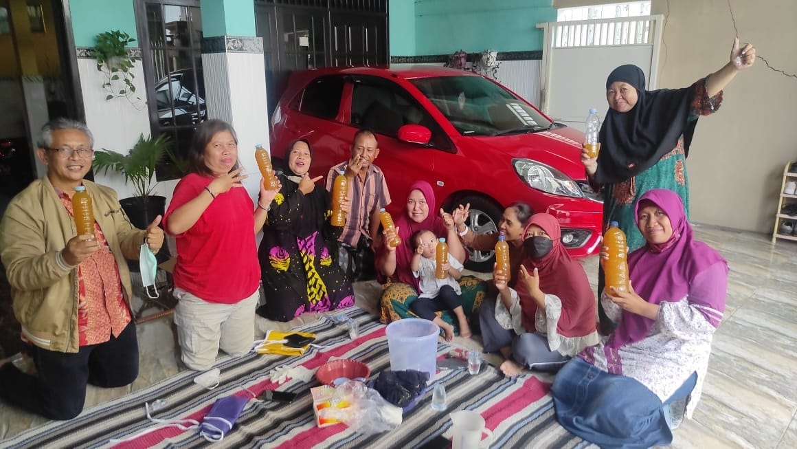 Fitra Mardiana dan Yuli Ermawati selaku dosen Fakultas Ekonomi dan Bisnis di Universitas Wijaya Putra, menggandeng Iin dari Praktisi Lingkungan memberikan pelatihan pembuatan eco enzyme bagi anggota karang taruna dan ibu-ibu di Kampoeng Semanggi.