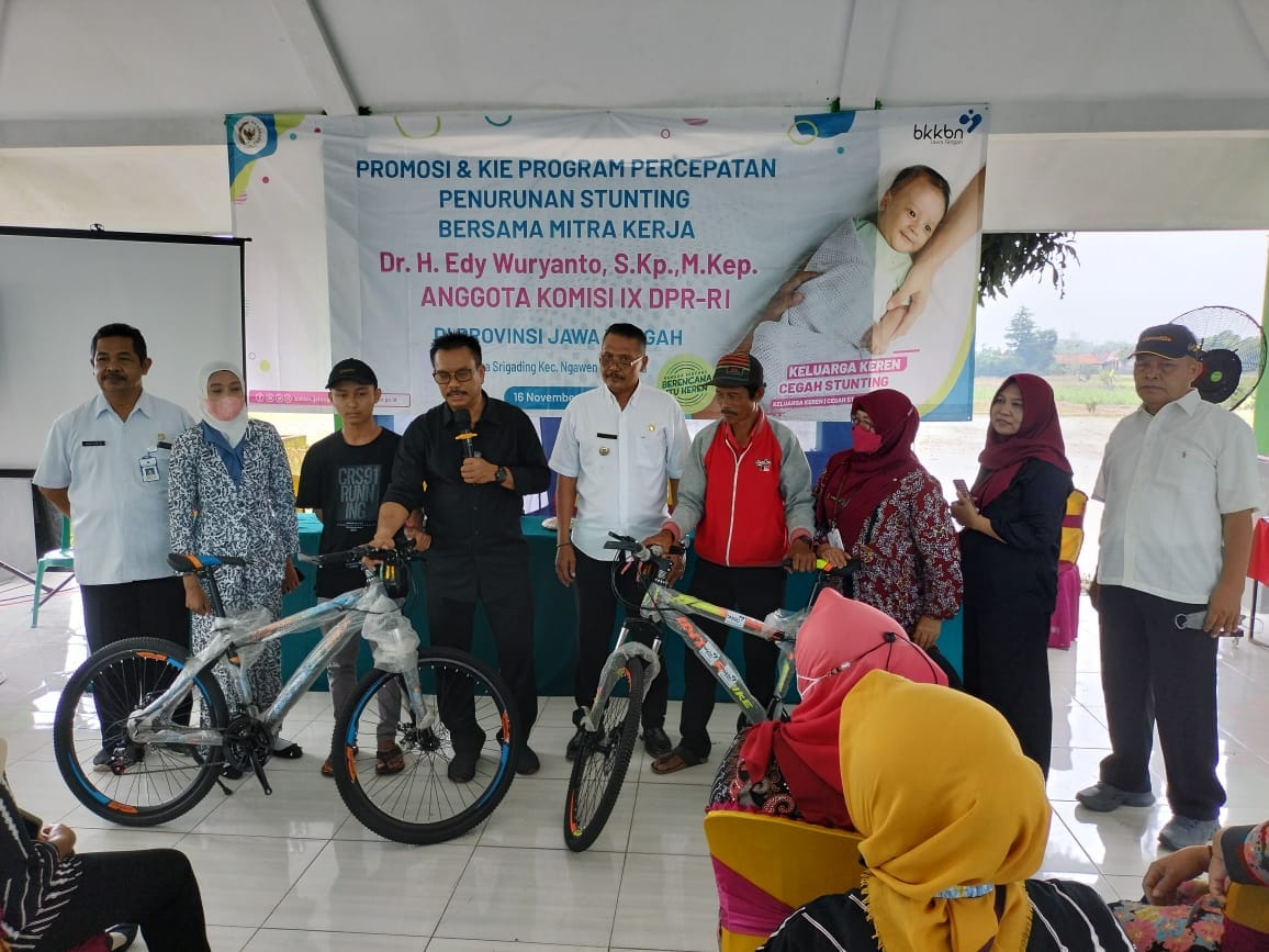 BLORA,NUSANTARAPOS,- Masih tingginya angka stunting di Indonesia khususnya di wilayah Kabupaten Blora, Badan Kependudukan Keluarga Berencana Nasional (BKKBN) pusat bersama dengan anggota DPR RI Komisi IX yang salaha satunya Dr. H Edy Wuryanto,S.KP.,M.Kep. Anggota DPR RI komisi IX melaksanakan agenda promosi dan KIE Program percepatan penurunan stunting yang salah satunya di laksanakan di Desa Srigading, Kecamatan Ngawen, Kabupaten Blora, Rabu (16/11/22).