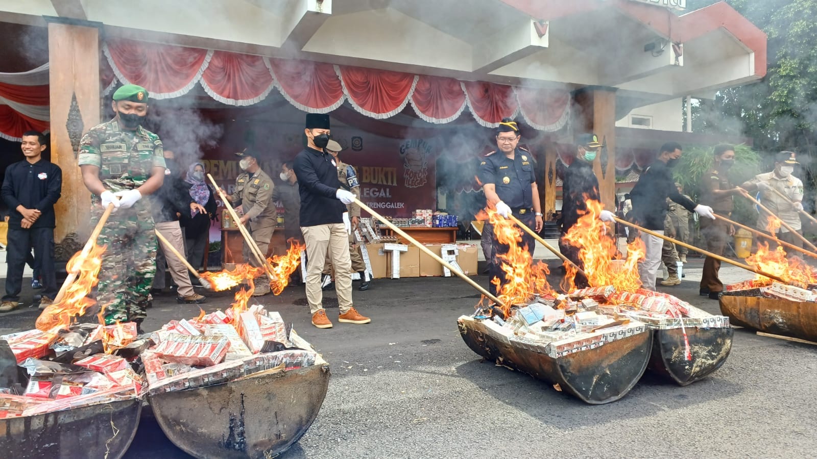 Sementara itu di tempat yang sama, Kasatpol PP dan Kebakaran Kabupaten Trenggalek Triadi Admono mengatakan dalam pemusnahan tersebut melaporkan rokok ilegal yang tidak dilekati pita cukai, dilekati pita cukai palsu, dilekati pita cukai salah peruntukannya dan dilekati pita cukai bekas.