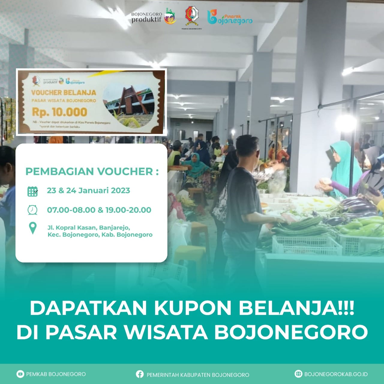 Bojonegoro, nusantarapos.co.id – Pemerintah Kabupaten Bojonegoro kembali akan membagikan kupon gratis di Pasar Wisata Bojonegoro. Hal ini setelah melihat masyarakat yang sangat antusias saat pembagian kupon sebelumnya.