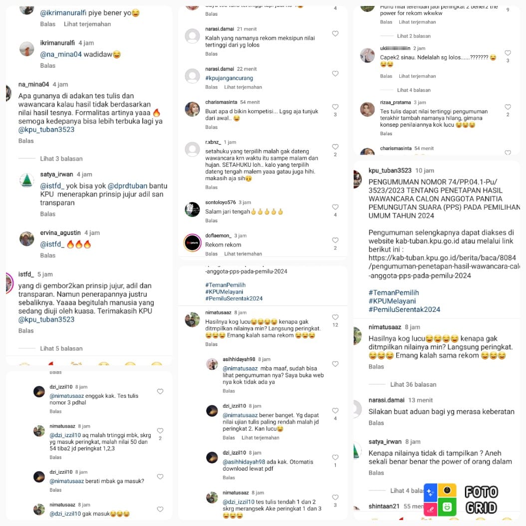 Itulah sepenggal komentar dari ratusan komentar di Instagramnya KPU Tuban. Yang isinya banyak ketidakpuasan akan kinerja KPU Tuban dalam hal perekrutan PPS Pemilu 2024. Bahkan ada yang menyinggung tentang dana perekrutan yang asal asalan dan untuk menghabiskan dana saja.