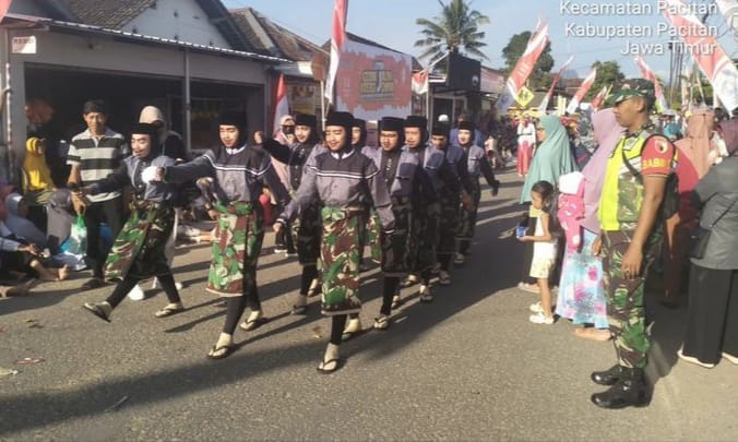 PACITAN,NUSANTARAPOS, – Babinsa Koramil 0801/01 Pacitan Kodim 0801/Pacitan bersinergi dengan pihak Kepolisian melaksanakan pengamanan lomba gerak jalan kreasi jenaka dalam rangka peringatan HUT Kemerdekaan RI ke 78, yang berlangsung di Kelurahan Sidoharjo Kec. Pacitan Kab. Pacitan, Senin (14/08/2023).