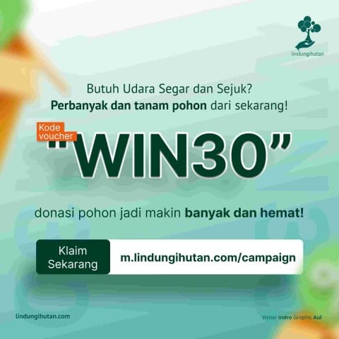 Gunakan kode voucher “WIN30” pada setiap kampanye alam yang sedang berjalan di platform LindungiHutan. Untuk informasi lebih lanjut silakan mengikuti media sosial lindungihutan.