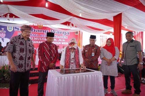 KLATEN, NUSANTARAPOS – Bupati Klaten, Sri Mulyani dalam kegiatan Sambang Warga di Desa Canan, Kecamatan Wedi meresmikan taman Canan Edupark. Secara simbolik Bupati Klaten, Sri Mulyani menandatangi prasasti sebagai tanda peresmian Taman Canan Edupark dalam acara Sambang Warga di Lapangan Desa Canan, Rabu (06/12/2023).