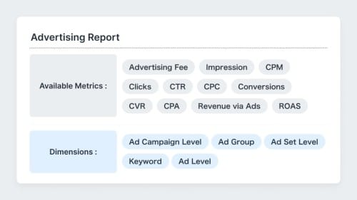 Dengan penambahan ini, pengguna AnyX dapat mengelola, menyatukan, dan menganalisis data dari platform periklanan seperti Google Ads, Facebook Ads, dan TikTok Ads secara terpusat, di samping Yahoo! JAPAN Ads, serta data dari saluran e-commerce, logistik, dan keterlibatan pelanggan. Data dapat diakses berdasarkan campiagn, grup iklan, set iklan, kata kunci, dan materi iklan, sehingga memungkinkan analisis mendalam mengenai performa iklan di berbagai sudut dan metrik termasuk belanja iklan, tayangan, cost-per-mille (CPM), klik, clickthrough rate (CTR), cost-per-click (CPC), konversi, rasio konversi, cost-per-acquisition (CPA).