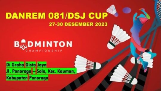 Ponorogo, – Kejuaraan bulu tangkis Danrem 081/DSJ Cup siap digelar di Graha Gista Jaya, Ponorogo, pada 27-30 Desember 2023.