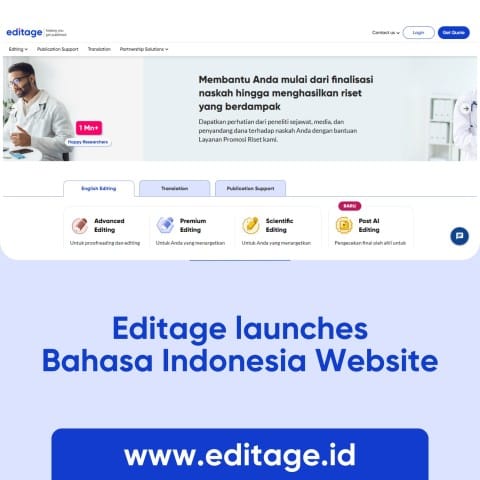 Researchers in Indonesia can now experience the convenience and efficiency of Editage’s services, enhancing their ability to navigate and excel in the global research landscape. For more information, visit www.editage.id.