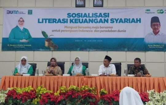 Gresik, Nusantarapos.co.id – Dalam rangka pemberdayaan kader yang termaktub dalam tema Menguat bersama, Maju Bersama untuk Perempuan Indonesia dan Peradaban Dunia. Pimpinan Pusat Fatayat NU turun gunung ke Gresik menggelar kegiatan Sosialisasi Literasi Keuangan Syariah di Aula Ainul Yaqin Dinas Pendidikan Kabupaten Gresik, Minggu (14/1/2024).