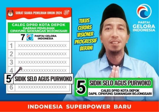 Depok, NUSANTARAPOS.CO.ID – Kota Depok sebagai kota satelit ibukota hingga kini dianggap masih terpinggirkan. Permasalahan kota antara lain kemacetan, pengangguran, pendidikan, kesehatan dan sejumlah persoalan lainnya. Hal itulah yang membuat Sidik Selo Agus Purwoko, Caleg DPRD Kota Depok dari Partai Gelora Indonesia merasa prihatin.