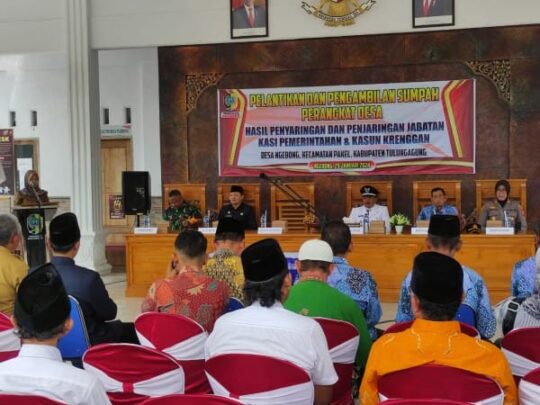 Tulungagung – Danramil Tipe B 0807/10 Pakel, Kapten Arh Handy Kurniawan bersama anggota Koramil Pakel dan Polsek Pakel menghadiri undangan sekaligus mengamankan prosesi pelantikan dan pengambilan sumpah perangkat desa di Desa Ngebong Kecamatan Pakel Kabupaten Tulungagung Jawa Timur, Senin (29/01/2024).