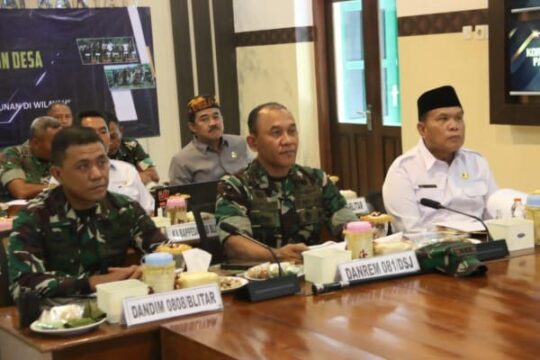 Blitar – Melalui Video Conference (Vidcon), Danrem 081/DSJ Kolonel Inf H. Sugiyono mengikuti kegiatan Rapat Koordinasi Teknis (Rakornis) TNI Manunggal Membangun Desa (TMMD) ke 119 TA. 2024, bertempat di Ruang Data Makodim 0808/Blitar Jl. A. Yani No. 6 Kel/Kec. Kepanjenkidul, Kota Blitar. Rabu (7/2/2024).