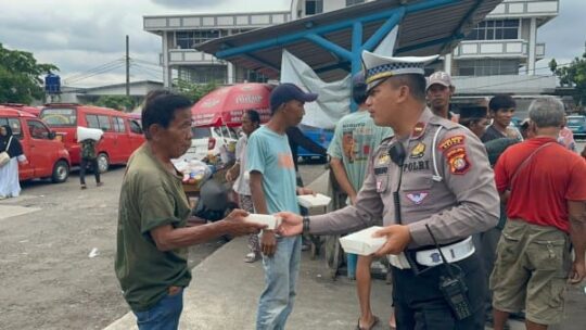 DEPOK, NUSANTARAPOS – Satuan Lalu Lintas Polres Metro Depok dalam program Jumat berkah rutin membagikan nasi kotak, Ini sebagai bentuk kepedulian institusi Polri kepada masyarakat.