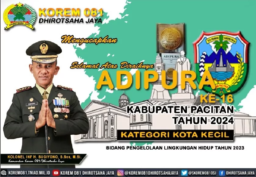 Pacitan Raih Adipura ke-16 Berturut-Turut, Danrem 081/DSJ Bangga Sebagai Putra Daerah
