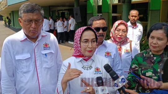 Ketua Umum KADIN DKI Jakarta Diana Dewi didampingi jajarannya sedang diwawancarai awak media.