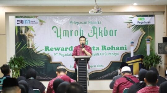 Surabaya, Nusantarapos.co.id – Memasuki bulan syawal 1445, PT Pegadaian memberangkatkan peserta program Umrah Akbar dari beberapa wilayah di Indonesia. Adapun tanggal keberangkatan Umrah Akbar dimulai pada 22, 23 dan 24 April 2024.