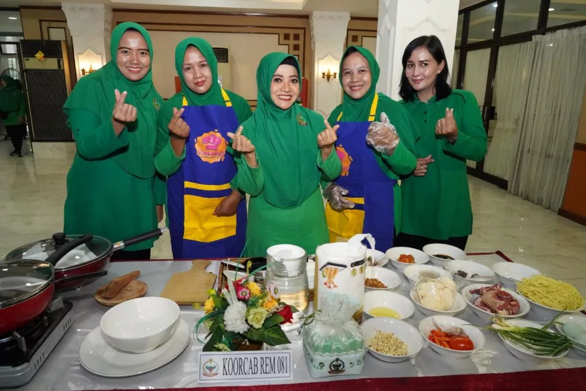 Surabaya, – Ketua Persit KCK Koorcab Rem 081 PD V/ Brawijaya Ny. Triana Sugiyono menyambut baik kegiatan Masamo “Masak Bersama Master” yang diselenggarakan di Balai Prajurit Makodam V/Brawijaya, Surabaya.