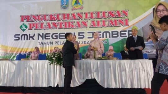 Jember, Nusantarapos.co.id – Keluarga Besar SMKN 5 Jember mengelas Acara Pengukuhan dan Pelantikan Alumni SMKN 5 setelah dinyatakan Lulus. Sebanyak 842 siswa/siswi dari semua Jurusan dinyatakan Lulus.