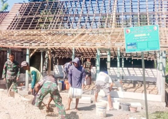 Dalam pengerjaan sasaran fisik program terpadu dan lintas sektoral tersebut, dilakukan secara gotong royong dengan melibatkan semua unsur masyarakat. Seperti yang terlihat dalam pengerjaan renovasi 12 unit Rumah Tidak Layak Huni (RTLH) di Desa Napis dan Desa Malingmati Kecamatan Tambakrejo, personel Satuan Tugas (Satgas) TMMD 120 Kodim 0813 Bojonegoro dan masyarakat membaur menjadi satu, bersama-sama mengerjakan pekerjaan tersebut, Jum’at (17/5/2024).