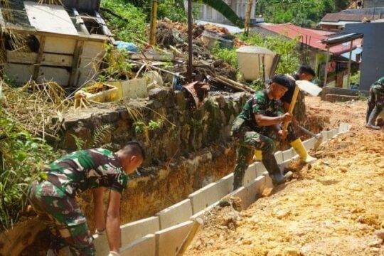BATAM,NUSANTARAPOS,Sasaran fisik program TNI Manunggal Membangun Desa (TMMD) Batam 120 TA 2024, Kodim 0316/Batam di Kavling Bukit Pelita Indah Kel Kabil Kec. Nongsa, meskipun cuaca tak mendukung terus melakukan pekerjaan fisik. Pasalnya, pelaksanaan pekerjaan ini hanya diberikan waktu selama 30 hari dari pembukaan hingga penutupan.