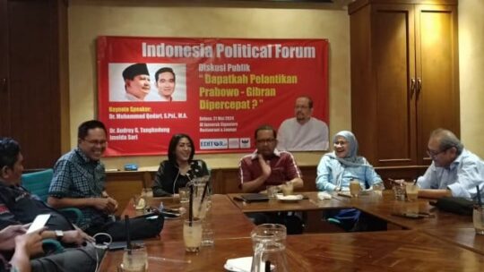 “Setahu saya Presiden dan wakil presiden memegang jabatan selama 5 tahun. Tidak ada yang menyatakan dipercepat, ” ungkap DMuhammad Qodari, Founder Indo Barometer dalam acara Diskusi Publik berjudul Dapatkah Pelantikan Prabowo Subianto Sebagai Presiden Terpilih Bisa Dipercepat?’ yang diadakan oleh Indonesia Political Forum di kawasan Menteng, Jakarta Pusat, Selasa (21/5/2024).