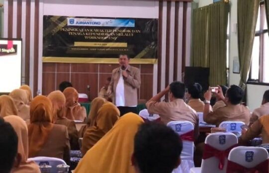 NUSANTARAPOS || Pada Senin pagi, 15 Juli 2024, SMK Negeri 1 Jumantono menyelenggarakan workshop Emotional and Spiritual Quotient (ESQ) untuk meningkatkan karakter para pendidik dan tenaga kependidikan sebelum tahun ajaran baru dimulai. Acara ini menghadirkan Asep Yudha Wirajaya, S.S, M.A, seorang dosen dari Fakultas Ilmu Budaya Universitas Sebelas Maret (FIB UNS), sebagai narasumber. Seluruh guru dan tenaga kependidikan di SMK Negeri 1 Jumantono turut hadir dalam acara ini.