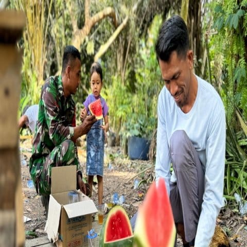 Kopda Hendrik Bagikan Semangka Sama Anak Kecil