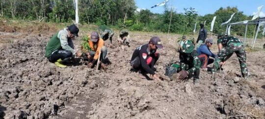Satgas TMMD Kodim 1011/KLK Bersama Warga Tanam Pohon Buah-Buahan