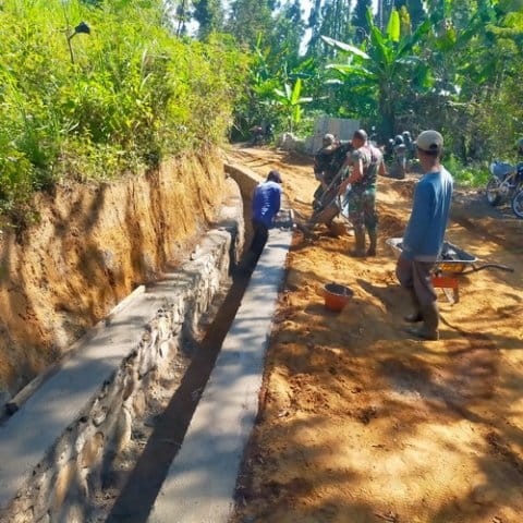 PROBOLINGGO,- Satgas TMMD ke 121 Kodim 0820/Probolinggo tahun 2024 bersama masyarakat Dusun Cocok, Desa Kalianan, Kecamatan Krucil dengan semangat terus mengerjakan pembangunan saluran irigasi di sisi jalan desa setempat.
