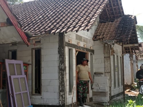 PROBOLINGGO.-Pengerjaan renovasi rumah tidak layak huni menjadi rumah tinggal huni milik Samik (55) warga Dusun Cocok, Desa Kalianan, Kecamatan Krucil sebagai penerima manfaat dalam program TNI Manunggal Membangun Desa (TMMD) ke 121 Kodim/Probolinggo sudah mencapai 40 persen.