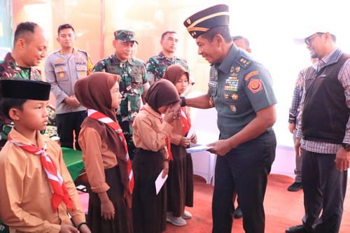 “Selain membantu pembangunan infrastruktur seperti peningkatan jalan, kami juga memberikan bantuan sosial untuk anak-anak yatim di lokasi TMMD ini,” kata Mayjen TNI Novi Helmy Prasetya, Jumat (9/8).