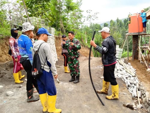 Pasiter 0820/Probolinggo Kapten Inf M Yahudin turun langsung ke masyarakat untuk memastikan seluruh warga Dusun Cocok, Desa Kalianan, Kecamatan Krucil mendapatkan manfaat dari adanya program pipanisasi tersebut.