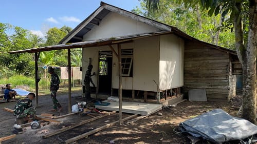 Sinergisitas TNI dan Warga dalam Menyelesaikan RTLH di Desa Manyahi