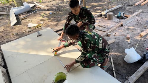 Pengerjaan dinding kasibot yang dilakukan dengan cermat ini diharapkan akan memperkuat struktur rumah serta meningkatkan estetika keseluruhan, mendukung tujuan TMMD untuk meningkatkan kualitas hidup masyarakat.(Pendim 1011/KLK)
