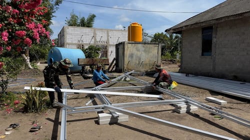 Pemasangan Baja Ringan di Mushola Darul Hikmah oleh Satgas TMMD