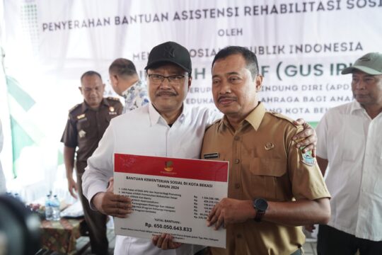 Dalam kegiatan ini, Menteri Sosial secara simbolis menyerahkan bantuan kepada Pj. Walikota Bekasi di halaman kantor Kelurahan Sumur Batu dan SDN Sumur Batu II. Bantuan yang diserahkan oleh Kementerian Sosial untuk Kota Bekasi mencapai total nilai Rp 650.050.643.833.