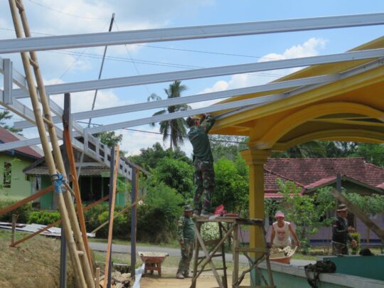 TAPIN,NUSANTARAPOS,– Tahapan demi tahapan terus dikerjakan Anggota Satgas TMMD Ke-122 Kodim 1010/Tapin pada sasaran perehaban Mushola Nurul Ihsan yang berada di Desa Suato Lama, Kecamatan Salam Babaris.