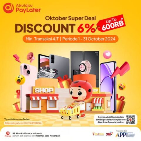 Nicky Adityantini Putri, Head of Business Offline PT Akulaku Finance Indonesia mengatakan “Dengan program Oktober Super Deal ini, diharapkan semakin banyak masyarakat yang bisa merasakan manfaat dari layanan kredit digital yang praktis dan efisien.”